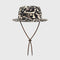 Fisher hat with an animal print design with the logo printed on the front. It has an adjustable strap with a clasp.