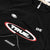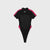 Black and red bodysuit with white decorative seams and the race-cars inspiration of the collection. It has a zipper from the neck to the chest. The back is open and has an inner lining. It comes with a snap closure at the bottom and the logo printed on the front. Its silhouette is high leg.