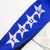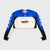 Long-sleeve crop top in blue and white with a sublimated design on the top and prints in various places on the garment. It has the logo embroidered on the front. The cuffs are ribbed, and it has a knitted V-neck.