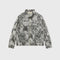 Women's gray jacket made of all-over python printed cotton drill. It features prints on the front and back and front pockets. The cuffs are adjustable with a button.