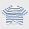 Cotton t-shirt with a continuous print of blue and white lines. It has the logo printed on the front and a ribbed neckline.