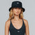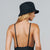 Black bucket hat with a classic silhouette and the logo printed on the front.