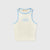 Cream tank top silhouette t-shirt with sky blue hems. Comes with a high-density printed logo on the front.