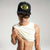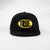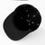 Black golf cap made of cotton drill. It comes with an adjustable strap at the back, an inner lining, and raised embroidery on the front.