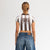 Women's slim-fit T-shirt. Features high-density logo prints on the front and back. It features a continuous all-over white and brown striped design. The neckline is knitted.