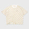 This t-shirt features an all-over plaid design. It's made from heavyweight cotton with a ribbed collar and boxy fit silhouette. It features the collection's logo printed in high density on the front, as well as an exterior label on the back and a pennant on one sleeve. It easily matches with our jeans or jorts.