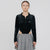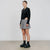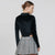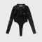 Bodysuit in suede-effect rib. It features a high-density print on one sleeve and the front of the side. It features a shirt-like collar and a front zipper.