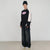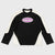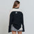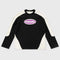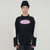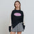 Black t-shirt with cream-colored shoulders and lower sides, long sleeves, and an oversized silhouette. It features a high-density logo print on the front.