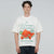 Cream T-shirt with a boxy silhouette, made of cotton. It features a ribbed neckline and a flat, high-density, combined print on the front.