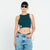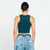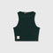 This tank top comes with an exterior label at the bottom. It is made entirely of rib and is a little longer than our previous tanks. Pine green in color, it is a good complement to our shorts.