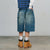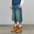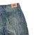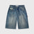 Jorts made of blue denim with a washed-effect, a masculine fit and mid rise. They feature an embroidered logo on a back pocket and a rustic finish at the bottom.