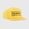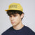 This yellow golfer cap is made of 100% cotton drill fabric. It is slightly taller than our traditional caps and features the logo and collection designs embroidered in 3D in black. It also includes internal mesh and a plastic adjustable buckle at the back.